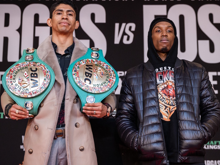今天,现WBC羽量级拳王/两个级别的世界冠军墨西哥人雷-瓦格斯(36-0,22KO)和美国人奥沙基-福斯特(19-2,11KO)在圣安东尼奥召开了赛前最后一次新闻发布会。北京时间本周日,两人将进行一场预定为12个回合的次轻量级拳王争霸战,争夺WBC-130磅的世界拳王金腰带。雷-瓦格斯如果取胜的话,将成为三个级别的世界冠军。福斯特最近9战保持全胜,上一次失败还是2016年,2场败绩都是点数。
