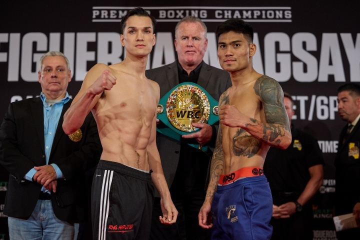 今天,前WBC超最轻量级拳王美国人布兰登-菲古罗阿(23-1-1,18KO)和前WBC羽量级拳王菲律宾人马克-马格萨约(24-1,16KO)在安大略丰田中心举行了赛前称重仪式。北京时间3月5日(周日)早晨,两人将进行一场预定为12个回合的羽量级拳王争霸战,争夺空缺的WBC过渡拳王。