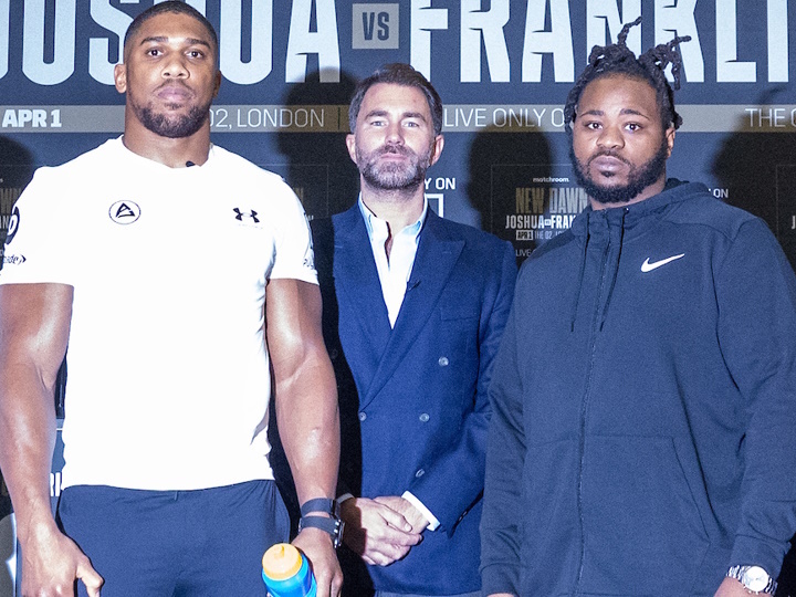 近日,前世界重量级拳王英国人安东尼-约书亚(24-3,22KO)向媒体表示,自己不会低估了4月1日的对手美国“989杀手”杰梅因-弗兰克林(21-1,14KO),因为拳击比赛是真刀实枪的,自己不可能靠知名度高击败弗兰克林的。