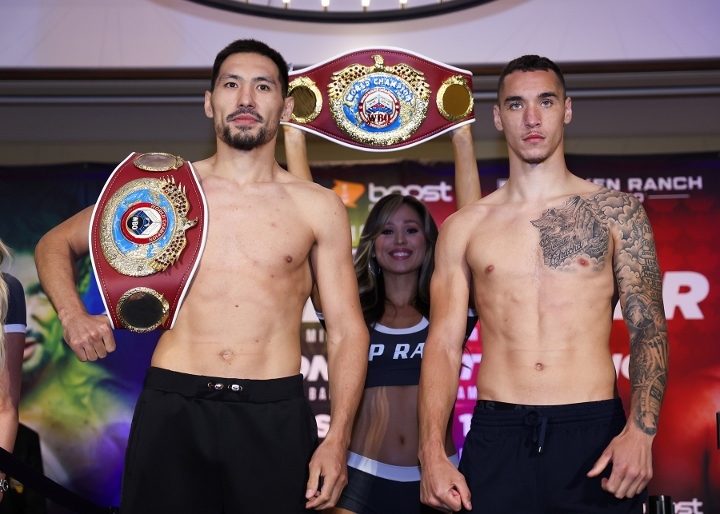 今天早些时候,现WBO中量级拳王哈萨克斯坦人加尼别克-阿利姆哈努利(13-0,8KO)和前中量级拳王挑战者加拿大人史蒂文-巴特勒(32-2-1,26KO)在加州斯托克顿体育场举行了赛前称重仪式。北京时间5月14日中午,两人将进行一场预定为12个回合的中量级拳王争霸战,加尼别克第二次卫冕WBO-160磅的世界拳王金腰带。