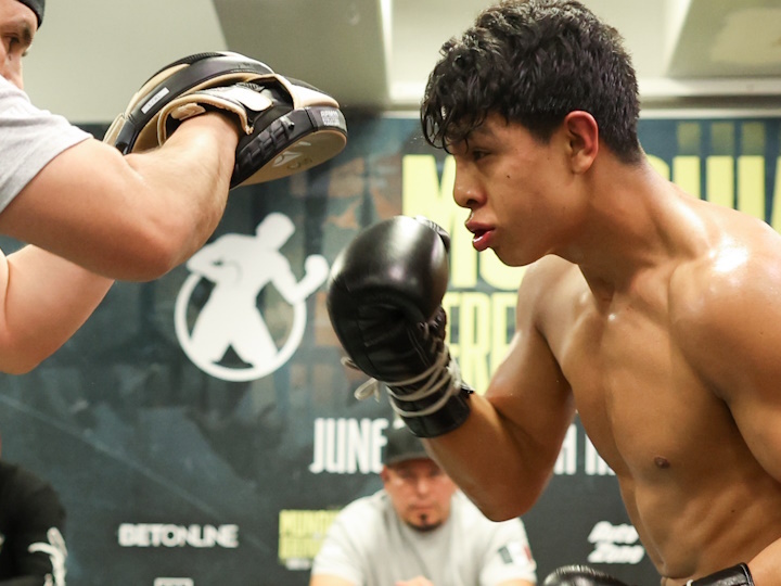 今天,前WBO超次中量级拳王墨西哥人加梅-蒙圭亚(41-0,33KO)进行了一次赛前公开训练,备战6月10日与前世界中量级拳王挑战者乌克兰人塞吉-德雷亚申科(14-4,10KO)的比赛,DAZN直播。蒙圭亚如果取胜的话,预计下来将挑战WBC中量级过渡拳王卡洛斯-亚当斯(22-1,17KO)。
