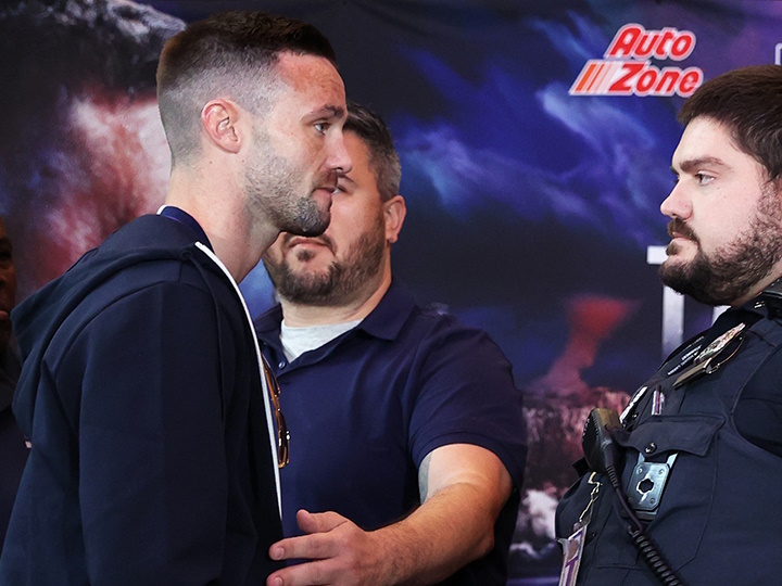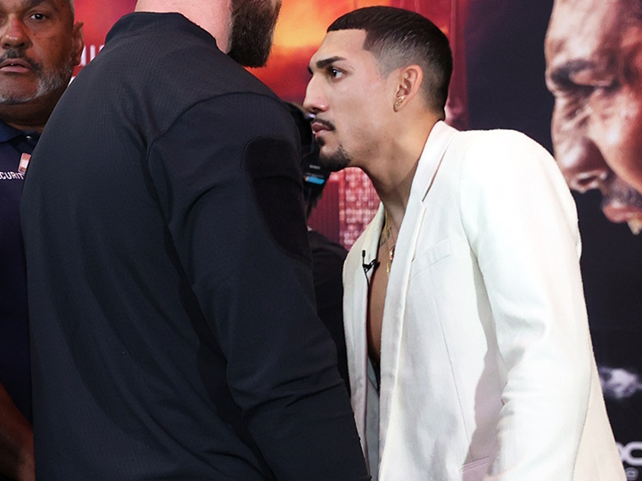 今天,现WBO超轻量级拳王英国人乔什-泰勒(19-0,13KO)和前WBA超级/IBF/WBO轻量级拳王美国人特奥菲莫-洛佩兹(18-1,13KO)在纽约麦迪逊花园广场召开了赛前最后一次新闻发布会。北京时间6月11日上午,两人将进行一场预定为12个回合的超轻量级比赛,泰勒卫冕WBO-140磅的世界拳王。今天发布会气氛很紧张,顶级推广公司特意找了安保不让两人近距离接触,以免发生冲突。