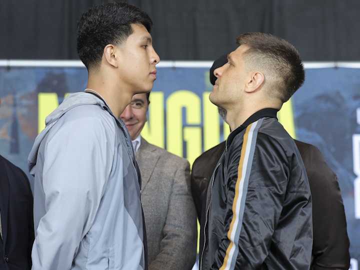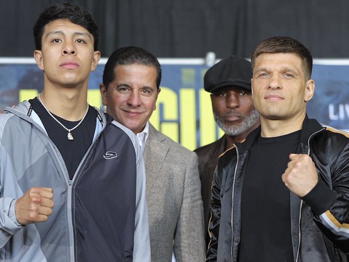 今天,前WBO超次中量级拳王墨西哥名将加梅-蒙圭亚(41-0,33KO)和前世界中量级拳王挑战者乌克兰人塞吉-德雷亚申科(14-4,10KO)在美国安大略丰田体育场召开了赛前最后一次新闻发布会。北京时间6月11日上午,两人将进行一场预定为12个回合的中量级比赛,争夺WBC-160磅的银腰带,DAZN直播。