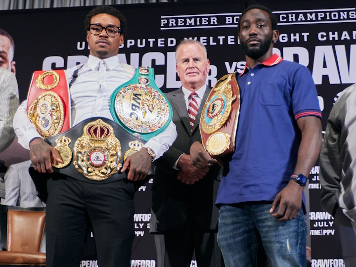 今天,现WBC/WBA超级/IBF次中量级拳王小埃罗尔-斯彭斯(28-0,22KO)和现WBO次中量级拳王/三个级别的世界冠军特雷恩斯-克劳福德(39-0,30KO)在美国洛杉矶召开了赛前首次新闻发布会。北京时间7月30日,两人将在拉斯维加斯T-Mobile体育场进行一场预定为12个回合的次中量级终极统一战,Showtime-PPV直播,这也是2023年世界拳坛最重大的比赛。