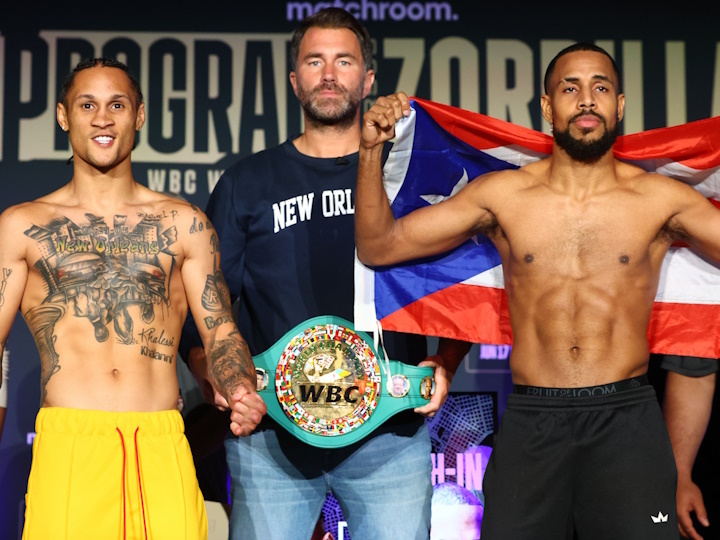 今天,现WBC超轻量级拳王美国人雷吉斯-普罗格雷斯(28-1,24KO)和波多黎各拳手达尼埃利托-索里亚(17-1,13KO)在美国新奥尔良举行了赛前称重仪式。北京时间6月18日上午,两人将进行一场预定为12个回合的超轻量级拳王争霸战,普罗格雷斯首次卫冕WBC-140磅的世界拳王。普罗格雷斯称重139磅,对手也是139磅,一次过关。