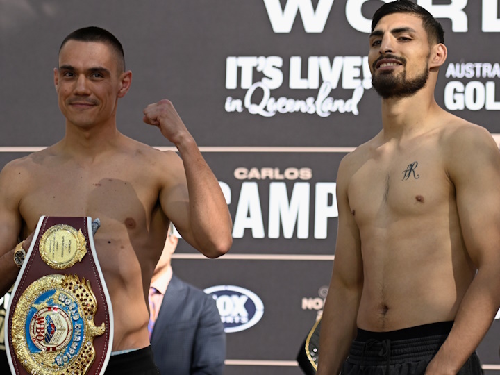 今天,现WBO超次中量级过渡拳王澳大利亚人蒂姆-茨尤(22-0,16KO)和墨西哥人卡洛斯-奥坎波(35-2,23KO)在澳大利亚布罗德海滩黄金海岸会议中心举行了赛前称重仪式。北京时间6月18日下午,两人将进行一场预定为12个回合的超次中量级比赛,蒂姆-茨尤首次卫冕WBO-154磅的过渡拳王。蒂姆-茨尤今天称重153.25磅,对手153.75磅,一次过关。