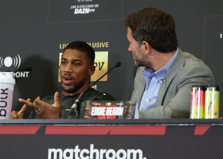 近日,前世界重量级拳王英国人安东尼-约书亚(25-3,22KO)的退岗人埃迪-赫恩向媒体表示,约书亚承认今年4月对美国“989杀手”杰梅因-弗兰克林(21-2,14KO)的比赛打的不好,8月12日对迪廉-怀特(29-3,19KO)的二战会强很多。