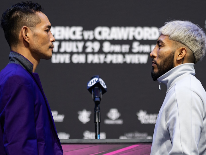 今天早些时候,前准五个级别的世界拳王“菲律宾闪电”诺尼托-多纳雷(42-7,28KO)和墨西哥人亚历山德罗-圣地亚戈(27-3-5,14KO)举行了赛前称重仪式。北京时间7月30日上午,两人将进行一场预定为12个回合的超最轻量级比赛,两人争夺空缺的WBC-118磅世界拳王。多纳雷今天称重117.25磅,对手117.5磅一次过关,这也是小斯彭斯Vs克劳福德主赛前的一场重要垫赛。