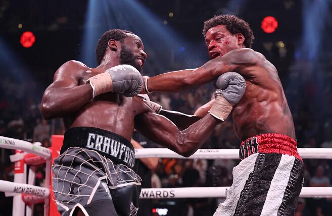 从数据看,克劳福德出拳数没有小斯彭斯多,但打的非常精准,有效击中率高达50.1%,重拳有效击中数98次,命中率更是达到了惊人的60.1%。小斯彭斯在第2回合被击倒一次后,改变了原来的刺拳战术,急着想对攻KO对手,但克劳福德技术相当细腻,没有给小斯彭斯这种机会,赢的很一边倒。