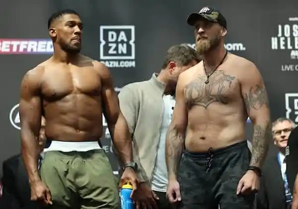 今天,前世界重量级拳王英国人安东尼-约书亚(25-3,22KO)和前欧洲重量级拳王芬兰“诺丁克噩梦”罗伯特-赫莱纽斯(32-4,20KO)在伦敦举行了赛前称重仪式。北京时间8月13日早晨,两人将进行一场预定为12个回合的重量级比赛,这也是约书亚今年第二战。约书亚称重250磅,比上一战轻了5磅。赫莱纽斯称重249.4磅。