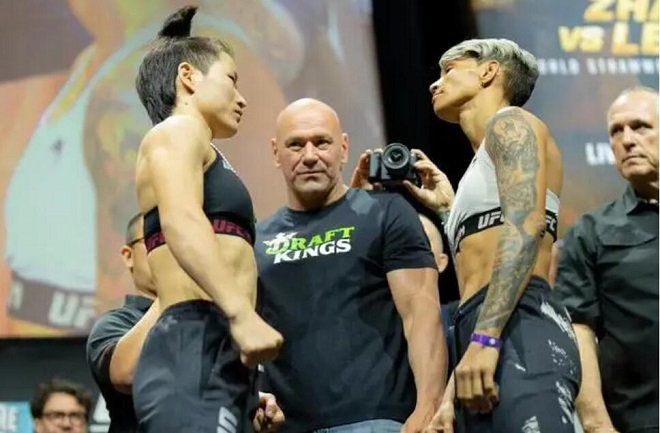 32岁的张伟丽目前战绩为23胜3负,其中11次KO,8次降服获胜。张伟丽在去年11月举行的UFC281中挑战“饼干怪兽”卡拉-埃斯帕扎(Carla Esparza),最终在第二回合时裸绞降服了对手,成为了UFC草量级史上第3位两次赢得过冠军头衔的女子选手。张伟丽在UFC的9场比赛中赢下了7场,仅在与罗斯-娜玛尤纳斯(Rose Namajunas)的冠军战中先后两次落败。原本UFC计划安排她们进行冠军三番战,但罗斯因故无法出战,因此对手最终敲定为莱莫斯。凭借着2020年3月UFC248中与乔安娜-扬杰柴克(Joanna Jedrzejczyk)那场精彩异常的冠军卫冕战,张伟丽几乎可以肯定将成为中国历史上首位进入UFC名人堂的选手。