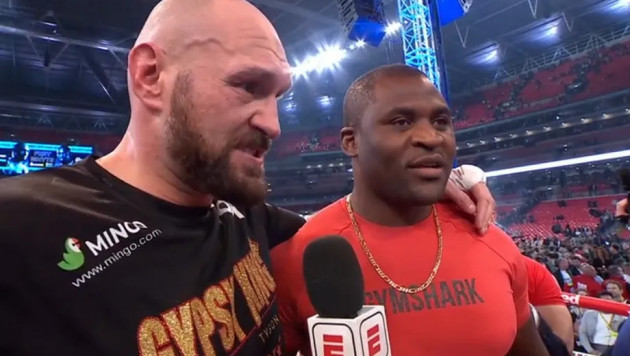 近日,现WBC重量级拳王英国人泰森-富里(33-0-1,24KO)向媒体表示,无论前UFC重量级冠军弗朗西斯-纳干诺(17-3,12K,4S)找谁担任教练,都不是自己对手。前一阵,纳干诺找了前重量级拳王迈克-泰森(50-6,44KO)担任教练。