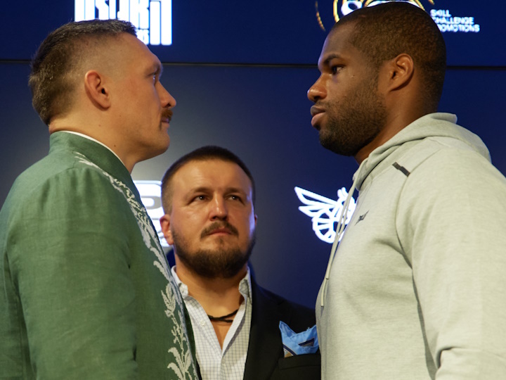 刚刚,现WBA超级/IBF/WBO/IBO重量级拳王乌克兰人奥莱克桑德拉-乌西克(20-0,13KO)和现WBA重量级普通拳王英国人丹尼尔-杜布瓦(19-1,18KO)在波兰华沙举行了赛前称重仪式。北京时间8月27日早晨,两人将进行一场预定为12个回合的重量级比赛,乌西克第二次卫冕重量级世界拳王。
