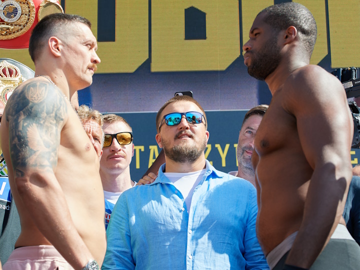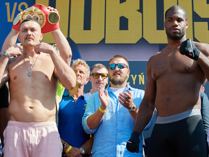 北京时间昨晚,现WBA超级/IBF/WBO/IBO重量级拳王奥莱克桑德拉-乌西克(20-0,13KO)和现WBA重量级普通拳王丹尼尔-杜布瓦(19-1,18KO)在波兰华沙举行了赛前称重仪式。北京时间8月27日早晨,两人将进行一场预定为12个回合的重量级比赛,乌西克第二次卫冕重量级世界拳王。乌西克称重220.9磅,杜布瓦233.2磅,差距并不悬殊。