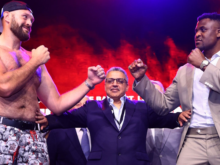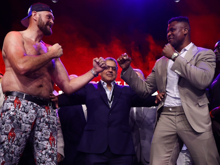 今天,现WBC重量级拳王泰森-富里(33-0-1,24KO)和前UFC重量级冠军喀麦隆“铁血战士”弗朗西斯-纳干诺(17-3,12K,4S)在英国伦敦召开了赛前新闻发布会。10月28日,两人将在沙特利雅得进行一场预定为10个回合的重量级无冕之战。目前赔率是1-7,泰森-富里被严重看好。