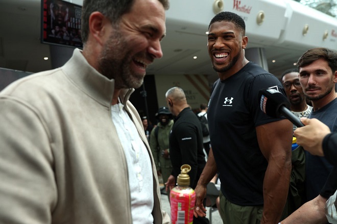 埃迪-赫恩说:“我是约书亚的头号粉丝,在我看来他可以KO维尔德、泰森-富里,成为无可争议的重量级拳王。或许我的想法有些疯狂,总之我期待和约书亚一起合作到底。我不在乎别人怎么说,总之我内心深处觉得约书亚是无敌的。”