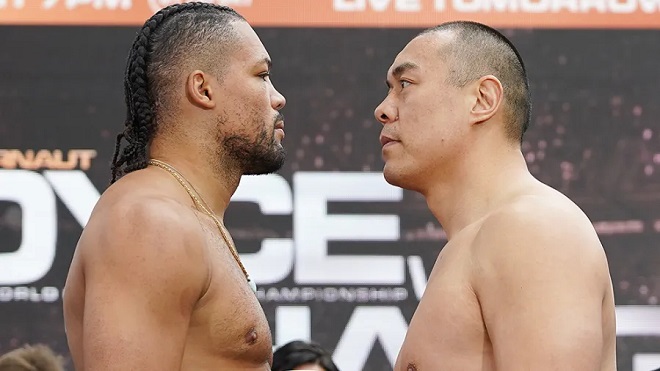 张志磊和乔伊斯这次都增加了体重,张志磊287磅,乔伊斯281.2磅,两人明显不是来磨点,而是准备激战的。乔伊斯右眼上次受到了重创,将是张志磊的重点击打目标。