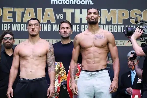 今天,现IBF次重量级拳王澳大利亚人贾-欧佩泰亚(22-0,17KO)和英国不败拳手乔丹-汤普森(15-0,12KO)在伦敦温布利OVO体育场举行了赛前称重仪式。北京时间10月1日早晨,两人将进行一场预定为12个回合的次重量级拳王争霸战,欧佩泰亚第一次卫冕IBF-200磅的世界拳王。欧佩泰亚今天称重198.6磅,对手198.9磅,一次过关。
