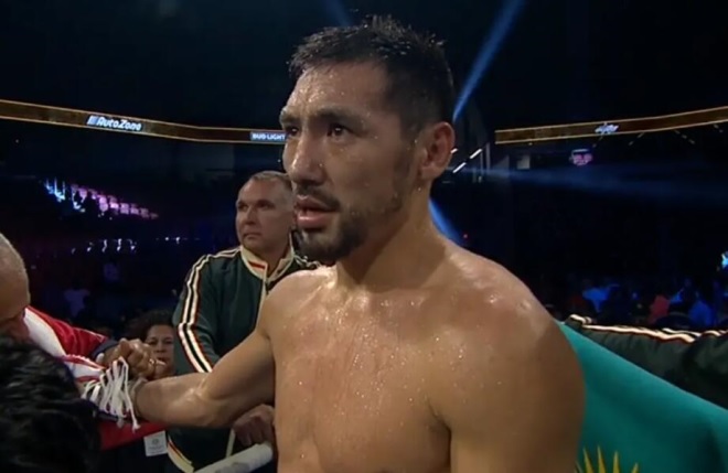 在刚刚结束的一场中量级拳坛统一战中,哈萨克斯坦名将加尼别克-阿利姆哈努利(15-0,10KO)6回合TKO了德国拳王文森佐-瓜尔蒂耶里(21-1-1,7KO),成为了WBO/IBF双料中量级拳王。