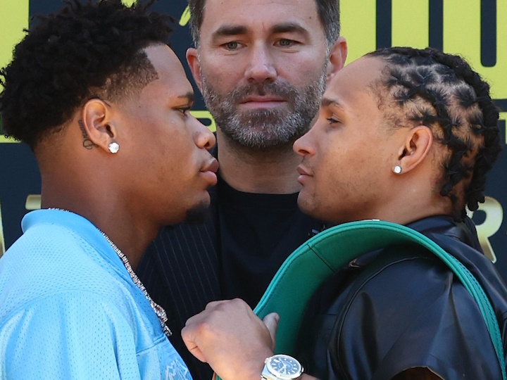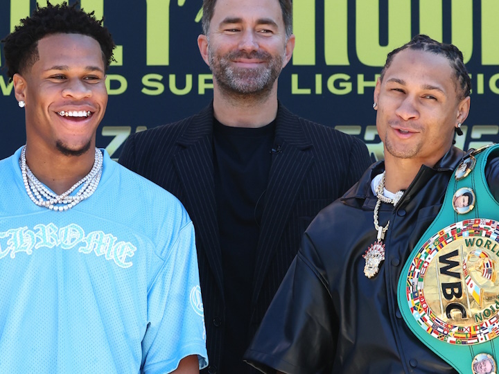 今天,现WBA超级/IBF/WBO轻量级拳王美国人德文-哈尼(30-0,15KO)和现WBC超轻量级拳王雷吉斯-普罗格雷斯(29-1,24KO)在美国旧金山召开了赛前新闻发布会。北京时间12月10日,两人将进行一场预定为12个回合的超轻量级拳王争霸战,普罗格雷斯卫冕WBC-140磅的世界拳王。目前赔率是1-3,德文-哈尼略被看好。