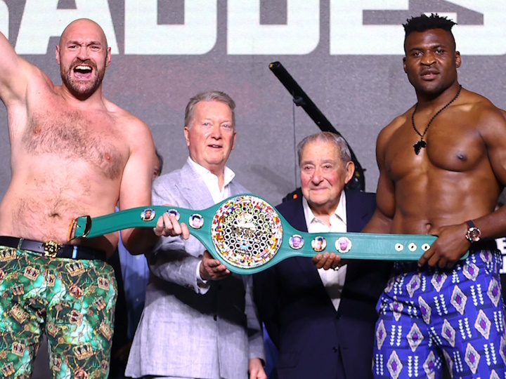 今天,现WBC重量级拳王泰森-富里(33-0-1,24KO)和前UFC重量级冠军“铁血战士”弗朗西斯-纳干诺(17-3,12,4S)在沙特阿拉伯利雅得召开了赛前最后一次发布会。北京时间10月29日早晨,两人将进行一场预定为10个回合的重量级比赛,泰森-富里不带WBC金腰带。