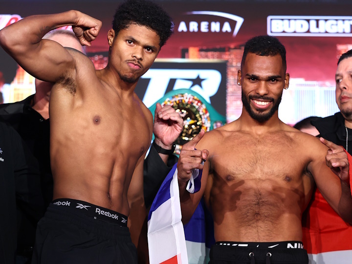 今天,前世界羽量级/次轻量级拳王美国人沙克-史蒂文森(20-0,10KO)和多米尼加共和国拳手德-洛斯-桑托斯(16-1,14KO)在拉斯维加斯举行了赛前称重仪式。北京时间11月17日(周五)上午,两人将进行一场预定为12个回合的轻量级比赛,争夺空缺的WBC-135磅拳王金腰带。史蒂文森称重133.8磅,对手134.3磅,一次过关。