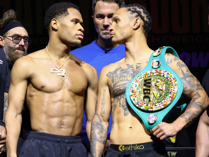 今天,前世界轻量级四料拳王美国人德文-哈尼(30-0,15KO)和现WBC超轻量级拳王雷吉斯-普罗格雷斯(29-1,24KO)在美国旧金山举行了赛前称重仪式。北京时间12月10日中午,两人将进行一场预定为12个回合的超轻量级比赛,普罗格雷斯卫冕WBC-140磅的世界拳王,DAZN直播。德文-哈尼今天称重刚好140磅,普罗格雷斯139磅。