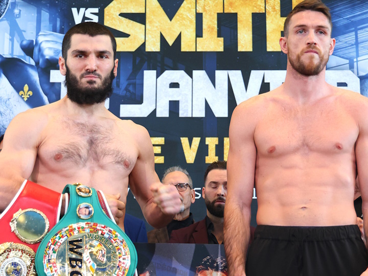 今天,现WBC/IBF/WBO轻重量级拳王俄罗斯裔加拿大人阿图尔-贝特比埃夫(19-0,19KO)和前WBA超中量级超级拳王英国人卡勒姆-史密斯(29-1,21KO)在加拿大魁北克举行了赛前称重仪式。北京时间1月14日中午,两人将进行一场预定为12个回合的轻重量级拳王争霸战,贝特比埃夫卫冕175磅的三条金腰带。