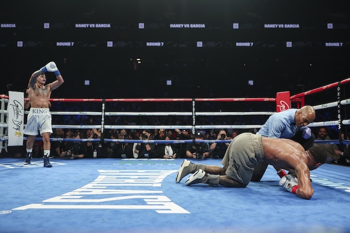 比尔-哈尼说:“无论胜利还是失败,我们都应该坦然接受。我们会从失败中吸取教训的。我一直说瑞恩-加西亚是一位优秀的拳手,我们业余拳手时曾和他打成了3-3平。现在他做社交媒体,当网红更好,其实赛前他故意装疯卖傻让大家以为他疯了,我知道加西亚没有疯,他打的不错,我们坦然接受失败。我们肯定希望打二番战。德文-哈尼现在还是WBC世界拳王,因为瑞恩-加西亚超重,所以他没有丢掉金腰带。我们希望立即二战,无论你现在排名第1,还是第2还是第3,你可以重新再来的。”