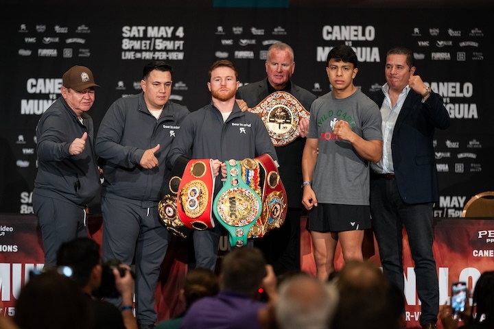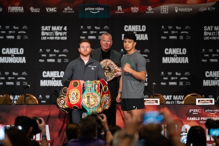 今天,现WBC/WBA超级/IBF/WBO超中量级拳王墨西哥巨星苏尔-阿瓦雷兹(60-2-2,39KO)和现WBC超中量级银腰带拥有者同胞加梅-蒙圭亚(43-0,34KO)在拉斯维加斯召开了赛前最后一次新闻发布会。北京时间5月5日(周日)中午,两人将进行一场预定为12个回合的超中量级比赛,阿瓦雷兹卫冕四条金腰带。目前赔率是1-5,阿瓦雷兹被广泛看好。