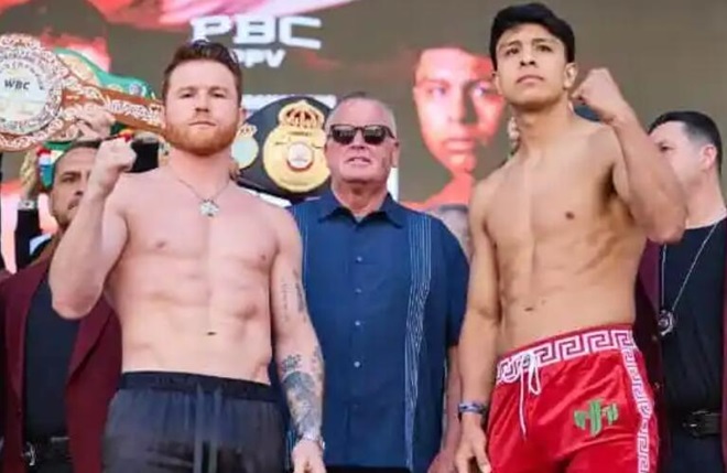 今天早些时候,现四个级别的世界拳王墨西哥巨星苏尔-阿瓦雷兹(60-2-2,39KO)和前WBO超次中量级拳王加梅-蒙圭亚(43-0,34KO)在拉斯维加斯米高梅大酒店进行了赛前称重仪式。北京时间5月5日中午,两人将进行一场预定为12个回合的超中量级比赛,阿瓦雷兹卫冕四条拳王金腰带。阿瓦雷兹今天称重166.8磅,蒙圭亚167.4磅,一次过关。