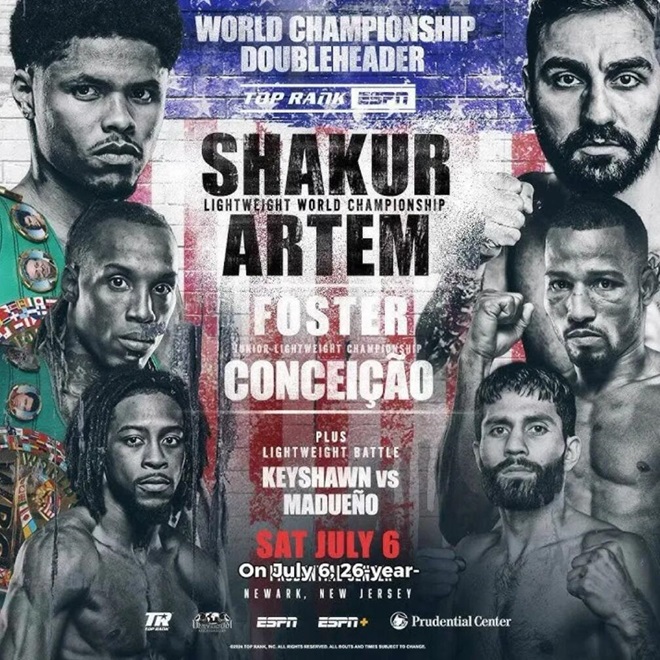 北京时间7月7日上午,在美国新泽西保城中心有几场重要比赛,主赛是现WBC轻量级拳王/三个级别的世界冠军美国人沙克-史蒂文森(21-0,10KO)对阵亚美尼亚裔德国人阿泰姆-哈鲁特云扬(12-1,7KO)。