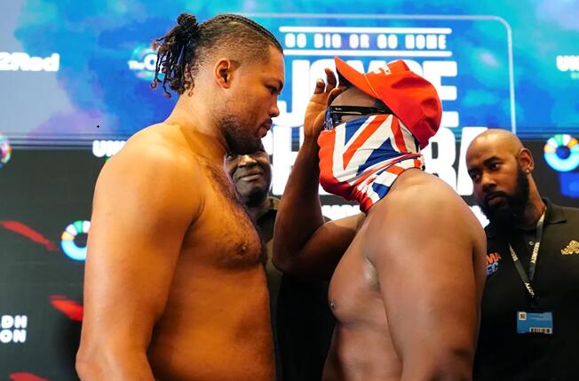 今天,前WBO重量级过渡拳王英国人乔-乔伊斯(16-2,15KO)和前欧洲重量级拳王同胞德雷克-切索拉(34-13,23KO)在伦敦O2体育场举行了赛前称重仪式。北京时间7月28日早晨,两人将进行一场预定为12个回合的重量级比赛。