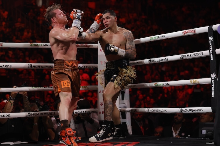 埃迪-赫恩说:“我对贝尔兰加的表现非常自豪,和阿瓦雷兹打一直是艰难的,你只能指望阿瓦雷兹年纪大了退化了,但他今天还是打出了自己的水平。贝尔兰加已经很优秀了,他之前从没有遇到过阿瓦雷兹这个档次的对手,但两人打的很激烈。我知道阿瓦雷兹赢的很清晰,但除了第3回合那次击倒外,贝尔兰加没有晃过,他承受住了阿瓦雷兹的所有重拳,一直在努力回击,展示了很高的拳商。今天168磅又诞生了一位明星。”