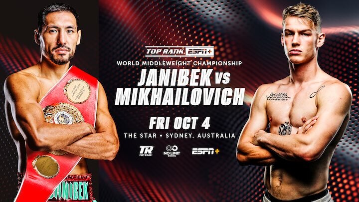 据媒体最新消息,现IBF/WBO中量级拳王哈萨克斯坦人加尼别克-阿利姆哈努利(15-0,10KO)将于10月4日再次登台,迎战新西兰拳手安德烈-米哈伊洛维奇(21-0,13KO),比赛在澳大利亚悉尼举行。不过加尼别克这次只卫冕IBF-160磅的世界拳王,不带WBO金腰带。