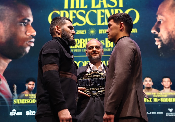 近日,现WBC/WBA超级/IBF/WBO轻重量级拳王阿图尔-贝特比埃夫(21-0,20KO)向媒体表示,他对苏尔-阿瓦雷兹(62-2-2,39KO)不是特别感兴趣,因为阿瓦雷兹现在不是175磅的世界拳王。