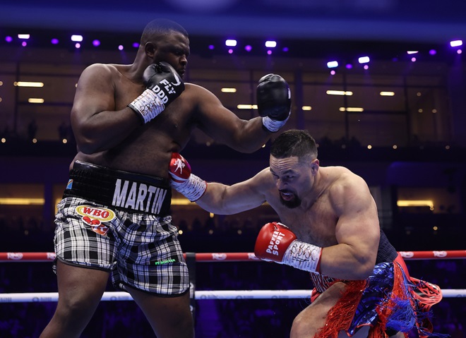 据媒体最新消息,IBF(国际拳击联合会)现在取消了刚果重炮手马丁-巴科勒(21-2,16KO)打拳王资格淘汰赛的资格。原本IBF是仲裁马丁-巴科勒与尼日利亚拳手埃菲-阿加格巴(20-1,14KO)比赛胜者成为IBF拳王法定挑战者的,但上周日马丁-巴科勒临时替补丹尼尔-杜布瓦(22-2,21KO)上阵,结果2回合被约瑟夫-帕克(36-3,24KO)TKO,输的有些狼狈。