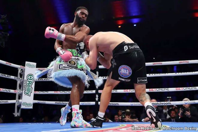 击败对手,27岁的加隆-恩尼斯职业战绩上升为34战全胜,30场比赛KO对手,现在BOXREC-147磅综合排名第1。恩尼斯身高1米78,臂展1米88,现在被很多人公认为147磅第一人。