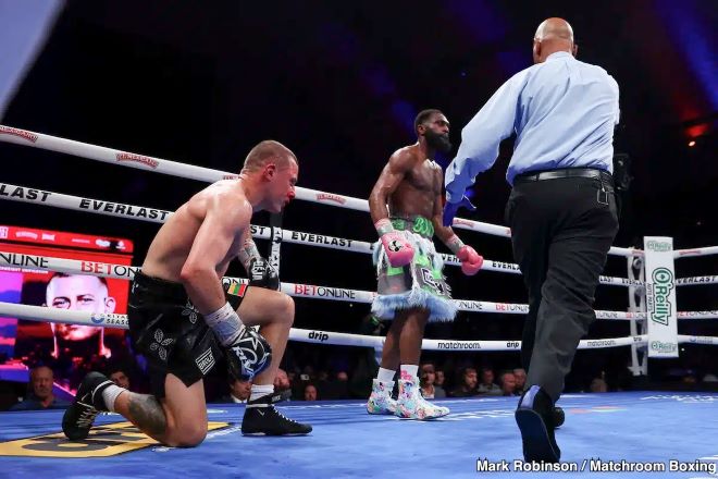今天中午,美国“靴子”加隆-恩尼斯(34-0,30KO)在大西洋城布罗德沃克中心不负众望,6回合TKO了立陶宛不败拳王埃曼塔斯-斯塔尼奥尼斯(15-1,9KO),成为了WBA超级/IBF次中量级双料拳王,并夺得了空缺的《拳坛》杂志147磅金腰带。