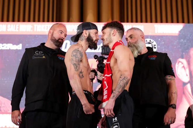 今天早些时候,现IBO次轻量级拳王爱尔兰人安东尼-卡卡斯(23-1,8KO)和前WBA羽量级拳王英国人利-伍德(28-3,17KO)在英国诺丁汉体育场举行了赛前称重仪式。北京时间5月11日早晨,两人将进行一场预定为12个回合的次轻量级比赛,卡卡斯第四次卫冕IBO-130磅的世界拳王金腰带。卡卡斯今天称重129.8磅,利-伍德也是129.8磅,一次过关。