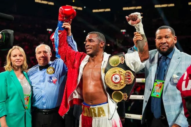 在刚刚结束的一场中量级拳王争霸战中,现WBA-160磅卫冕拳王/两个级别的世界冠军古巴裔美国人埃里斯兰迪-拉拉(32-3-3,19KO)12回合点数几乎完胜委内瑞拉拳手约翰-冈萨雷兹(36-5,34KO),赢得了卫冕战。