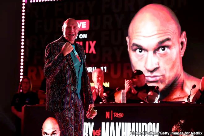 泰森-富里上一战还是在2024年12月二战点数再次输给了乌西克,距今有15个月没有比赛了,状态是未知数。好在马克赫穆多夫技术不全面,虽然有一身蛮力,但防守很粗糙,泰森-富里不挨到冷拳还是可以轻松过关的。