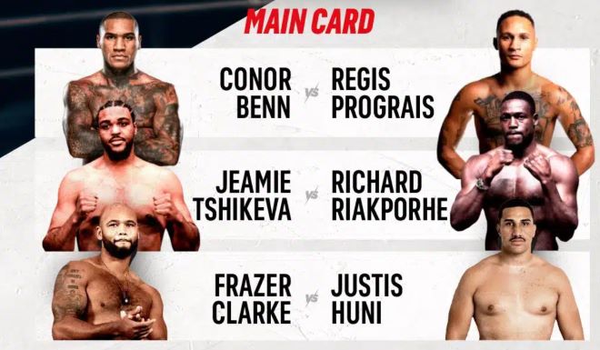 之前,英国重量级拳王杰米-特什克瓦(9-2,5KO)将对阵英国同胞“午夜列车”理查德-里克波赫(19-1,15KO),比赛预定打12个回合。特什克瓦去年11月争议点数击败了2021年奥运会铜牌得主弗雷泽-克拉克(9-2-1,7KO),爆了一个冷门。