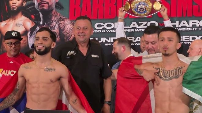 今天早些时候,现WBA超级/WBO迷你轻量级拳王波多黎各人奥斯卡-克拉佐(13-0,10KO)和美国人杰苏斯-哈洛(13-3,2KO)在美国阿纳海姆本田中心举行了赛前称重仪式。北京时间3月15日(周日)中午,两人将进行一场预定为12个回合的迷你轻量级拳王争霸战,克拉佐卫冕WBA/WBO世界拳王,DAZN直播。克拉佐称重104.8磅,对手103.4磅,一次过关。