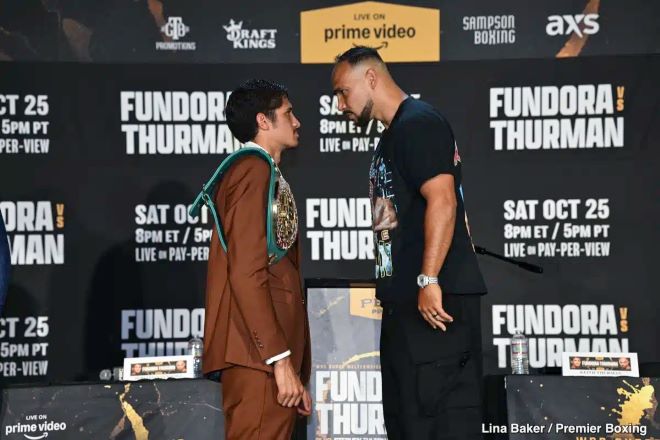 今天,前WBC/WBA次中量级拳王美国人凯斯-瑟曼(31-1,22KO)在新闻发布会上表示,现WBC超次中量级拳王“电线杆”塞巴斯蒂安-方多拉(23-1-1,15KO)是自己迄今遇到的最大挑战,尤其方多拉身高1米97,是凯斯-瑟曼迄今遇到的最高对手。