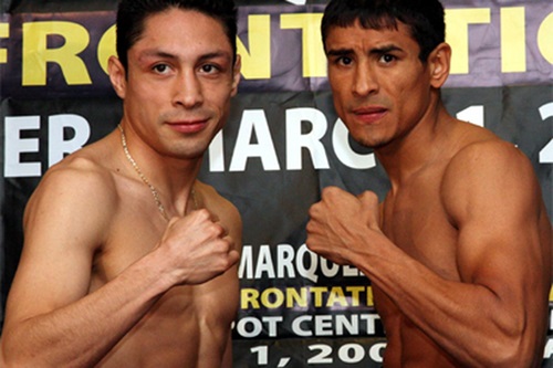 评注: 2012 年 4 月 14 日的一场超轻量级比赛,由三个级别的世界冠军曼尼 - 马奎兹对...