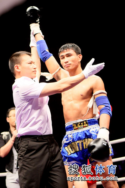 职业泰拳对抗赛,第一场:第三回合KO张军勇。首回合比赛张军勇进攻积极主动,频频主动接近对手用抱摔和腿法进攻,江佟猜则以肘击和膝顶来应对,两人多次抱在一起,但均未取得明显的主动权。第二回合开始张军勇一记腿击击中对方,随后在激烈的抱摔中张军勇将对方摔倒在地。江佟猜此后明显加强了主动进攻,几次将张军勇逼到台角,而张军勇显得有些体力不支,显得有些被动。