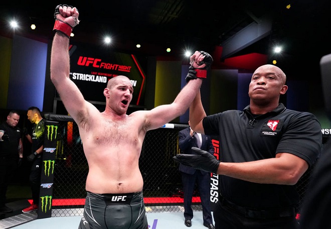 轻重量级:肖恩-斯特里克兰(Sean Strickland)(#7) 一致判定 胜 纳苏尔丁-伊马沃夫(Nassourdine Imavov)(#12)