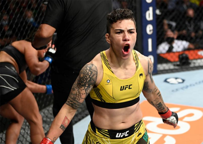 杰西卡-安德拉德(Jessica Andrade)的上一场UFC比赛是在去年4月进行的,当时她以一种出乎意料的方式惊艳全场,对阿曼达-莱莫斯(Amanda Lemos)使出了UFC史上的第一记站立手臂三角绞。