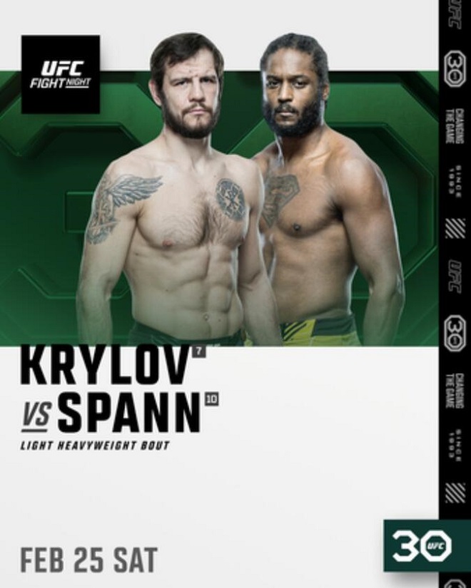 克雷洛夫Vs斯潘将领衔2月26日UFC赛事